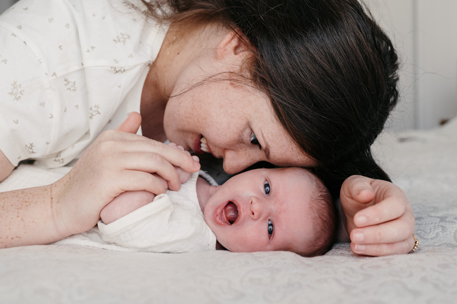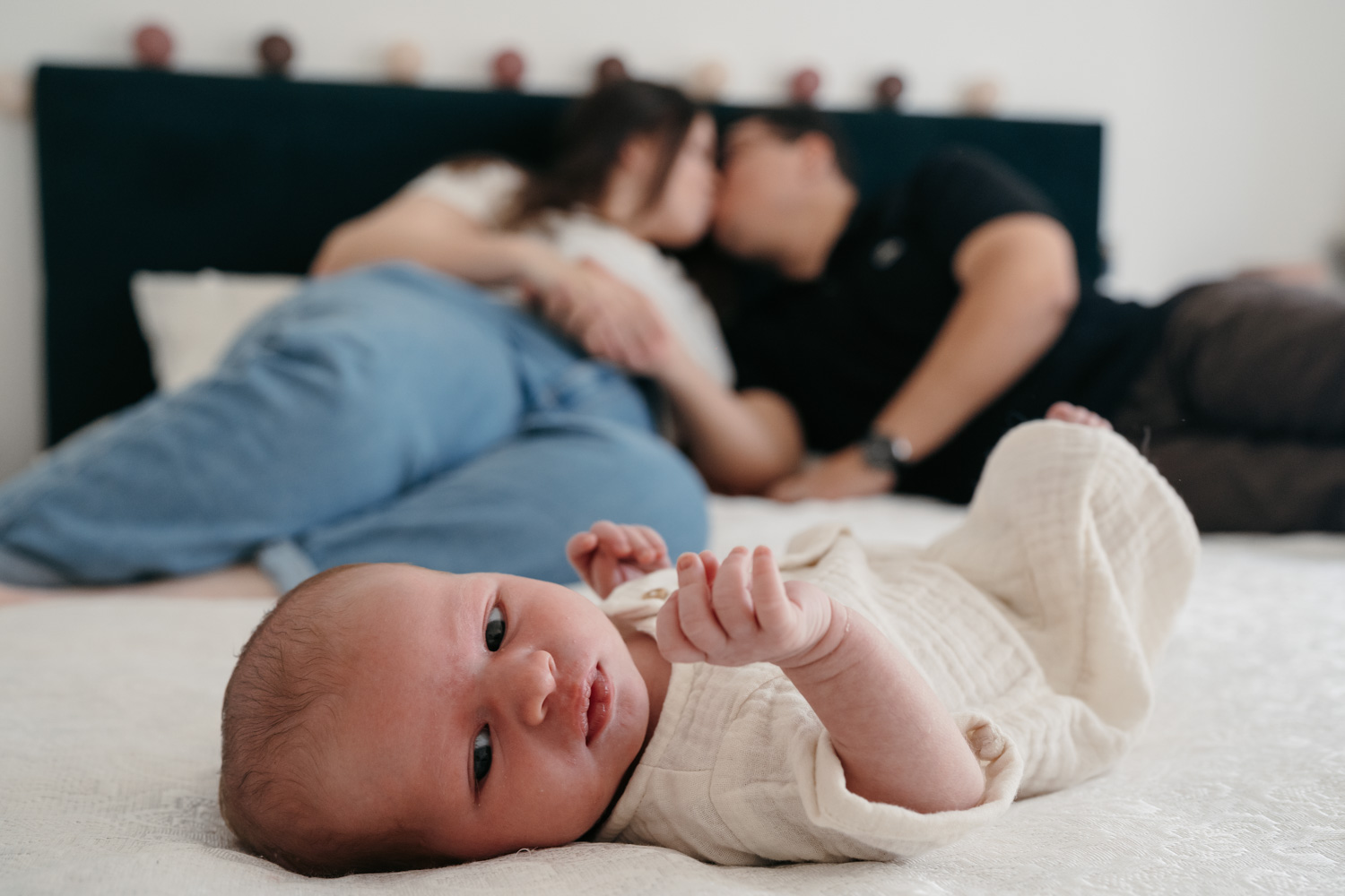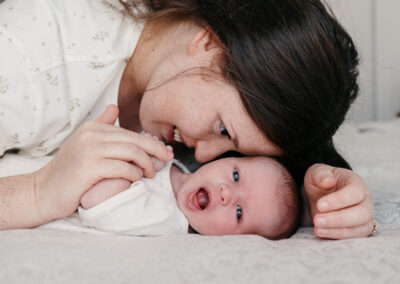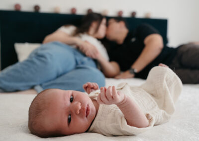 Lors des séances naissance, c’est bébé qui donne le rythme. Comme pour les séances famille avec des enfants, c’est eux qui décident et c’est bien plus drôle !